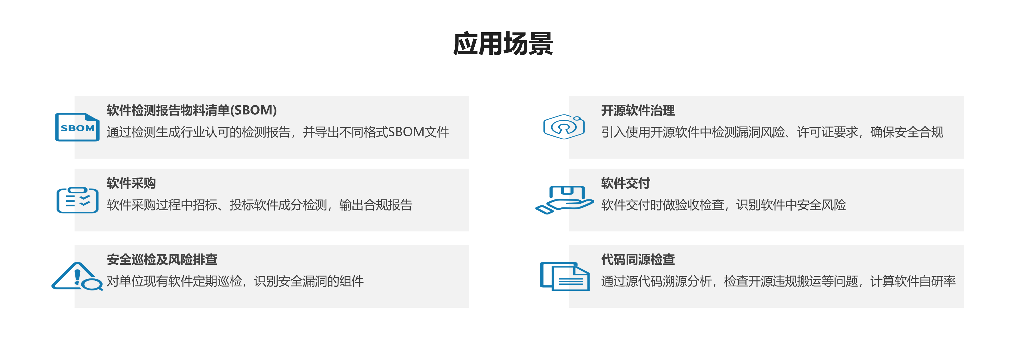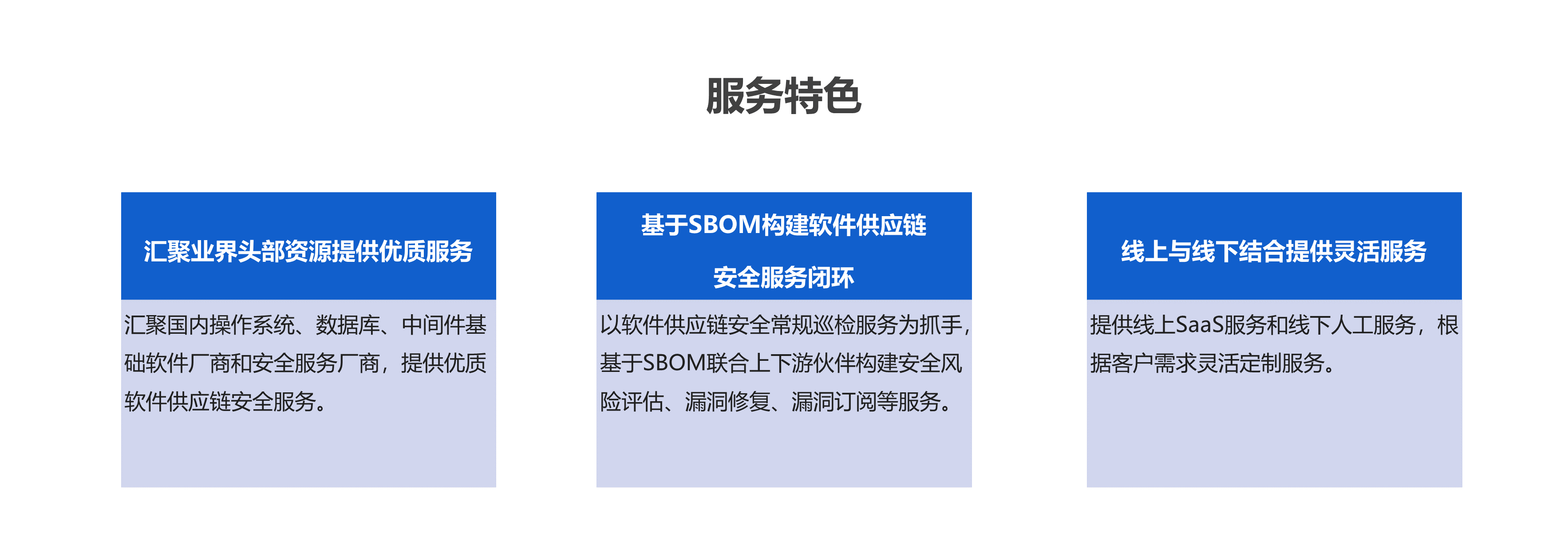 软件供应链安全服务中心 面向政务、金融、汽车、物流等供应链安全需求,提供全生命周期的软件成分分析、代码溯源、SBOM管理等服务,建立健全软件供应链服务体系,加强系统化、体系化建设,提升软件供应链安全风险管控能力,保障系统的持续稳定运行。 前往体验 → 软件供应链安全检测服务平台 用户名:demo 密码:AosL1nk!